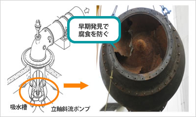 点検による異常の早期発見や定期的な工場整備を行うことで排水能力の低下を最小限に抑えることができます。