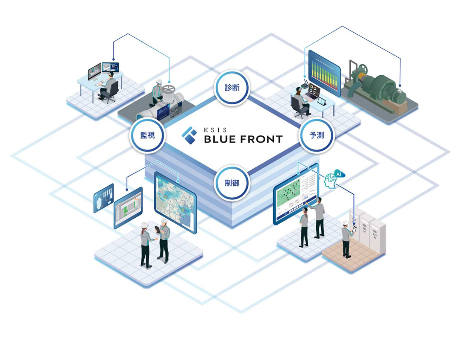 KSISはボンズカジノスロットマシンの経験と最新ICTを結集した水環境インフラIoTソリューション。インフラ施設やAIを活用した設備の長寿命化とLCC低減を実現し効率的な水環境インフラ運営をサポートします。