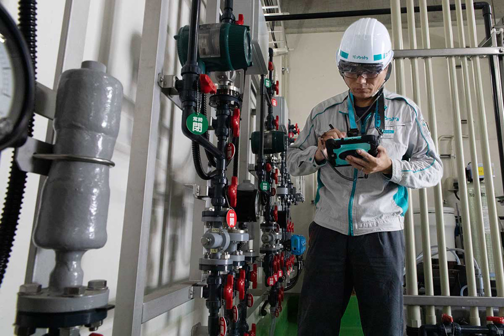 浄水場の運転管理は、24時間365日、安全で安定したプラントの稼動を実現するために、設備や機器のコンディションだけでなく気候や天候にも気を配ることが求められます。 私たちは、プラント運転の技術はもとより、日々の点検、緊急時の迅速な対応などにより問題発生を未然に防ぎます。さらに、これまで培ってきた経験、最新の技術情報などを迅速に連携し、質の高いサービスを提供します。