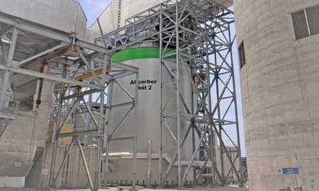 | 石灰石(CaCO3)スラリーをボンズカジノ 入金不要ボーナス剤として使用し、排ガス中のSO2を除去します。ボンズカジノ 入金不要ボーナスされたSO2は、最終的に石膏として回収します。 | |