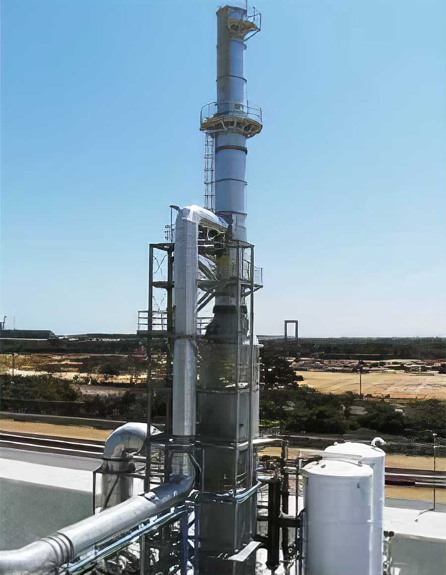 カーボンブラック製造工程から排出される燃焼排ガス中のSO2及び煤塵を海水を吸収剤として使用し、処理をするボンズカジノ入金設備を提供しています。